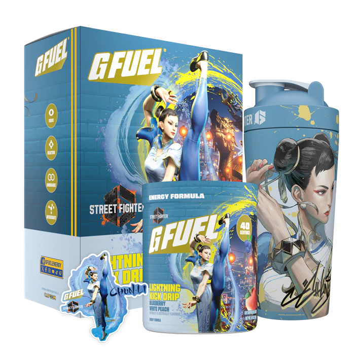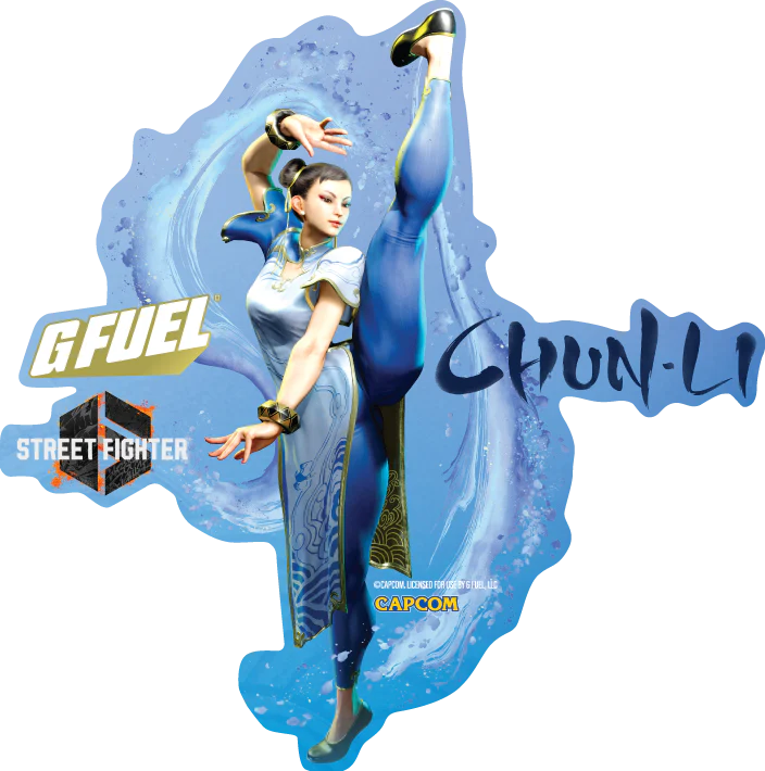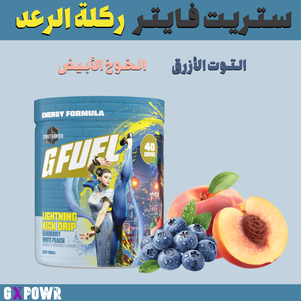 جي فيول ستريت فايتر- يحتوي على نكهة الخوخ الأبيض والتوت الأزرق المميزه خالي من السكر وعالي بالكافيين – G fuel Street Fighter Chun-Li