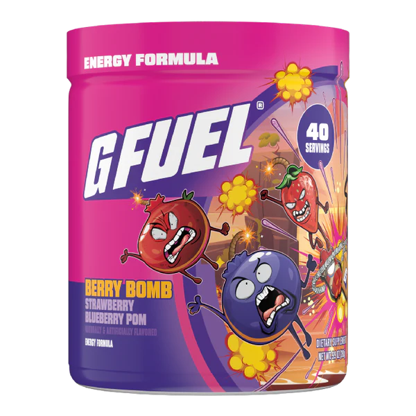 gfuel توصيل للسعودية بنكهة بيري بومب (توت اسود,فراولة,رومان) 40 حصة استخدام , G fuel berry bomb tube (40 servings).